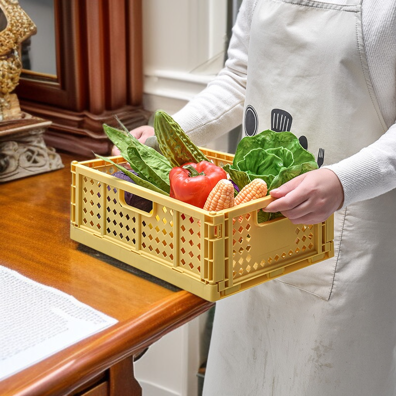 صندوق تخزين عملي لعرض الفواكه الطازجة، تصميم متين يوفر تهوية جيدة ويحافظ على نضارة الفاكهة، سهل التنظيف ومناسب للمطابخ والمتاجر.
